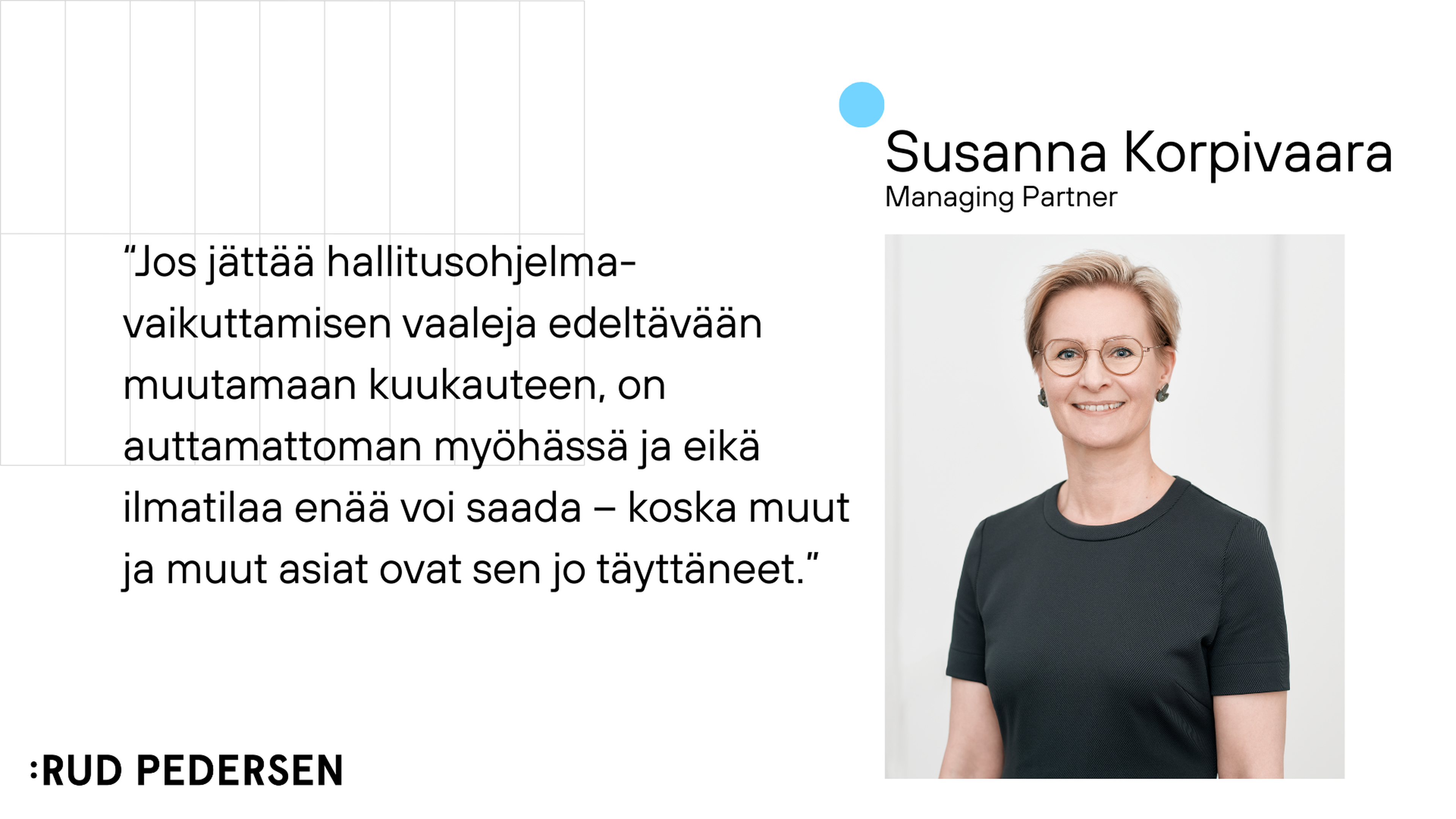 Asiakkaillemme olemme luotettu kumppani poliittisen päätöksenteon ja yhteiskunnallisen viestinnän maailmaan.